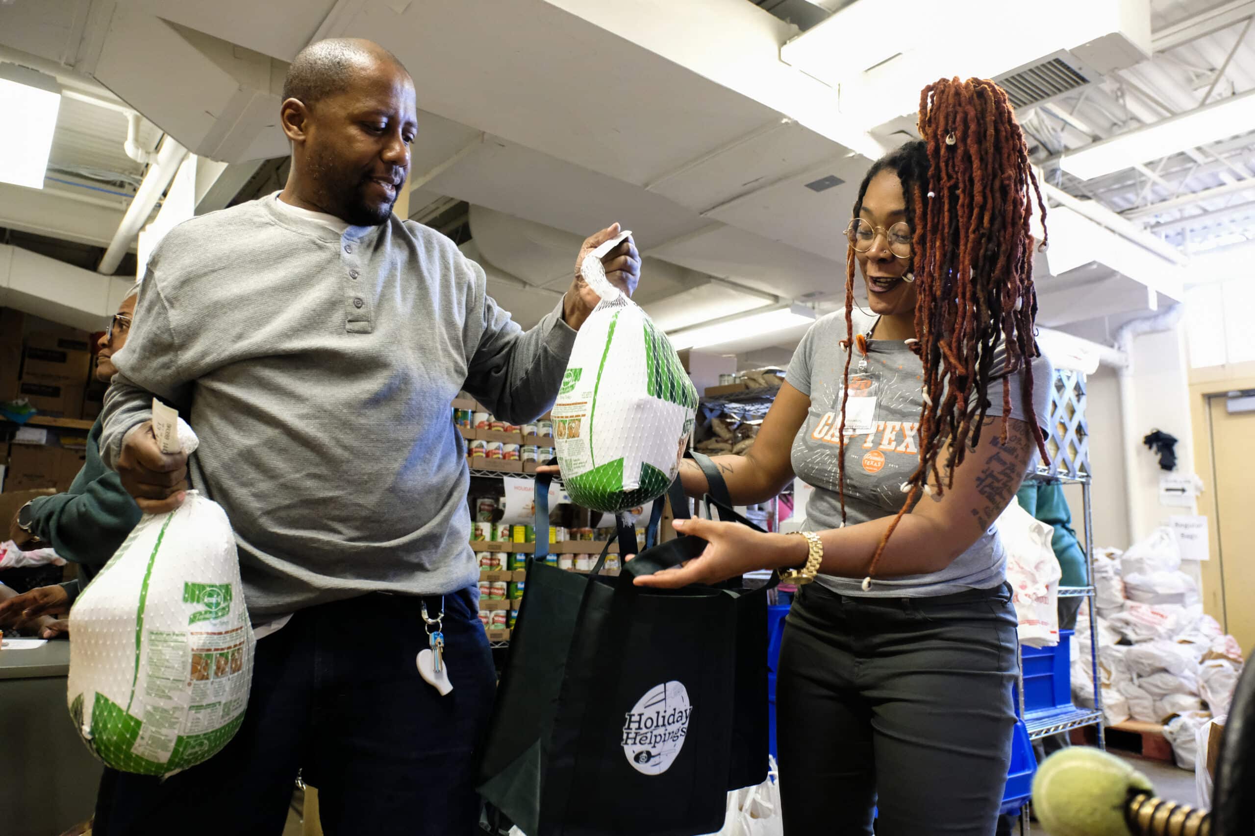 Holiday Helpings is Bread for the City’s annual seasonal program, led by our Food Program team to ensure low income community members have what they need to celebrate the holidays with dignity. Now in its 33rd year, Holiday Helpings provides thousands of DC families with whole turkeys (or chicken), festive fixings, and seasonal fresh produce throughout the month of November.