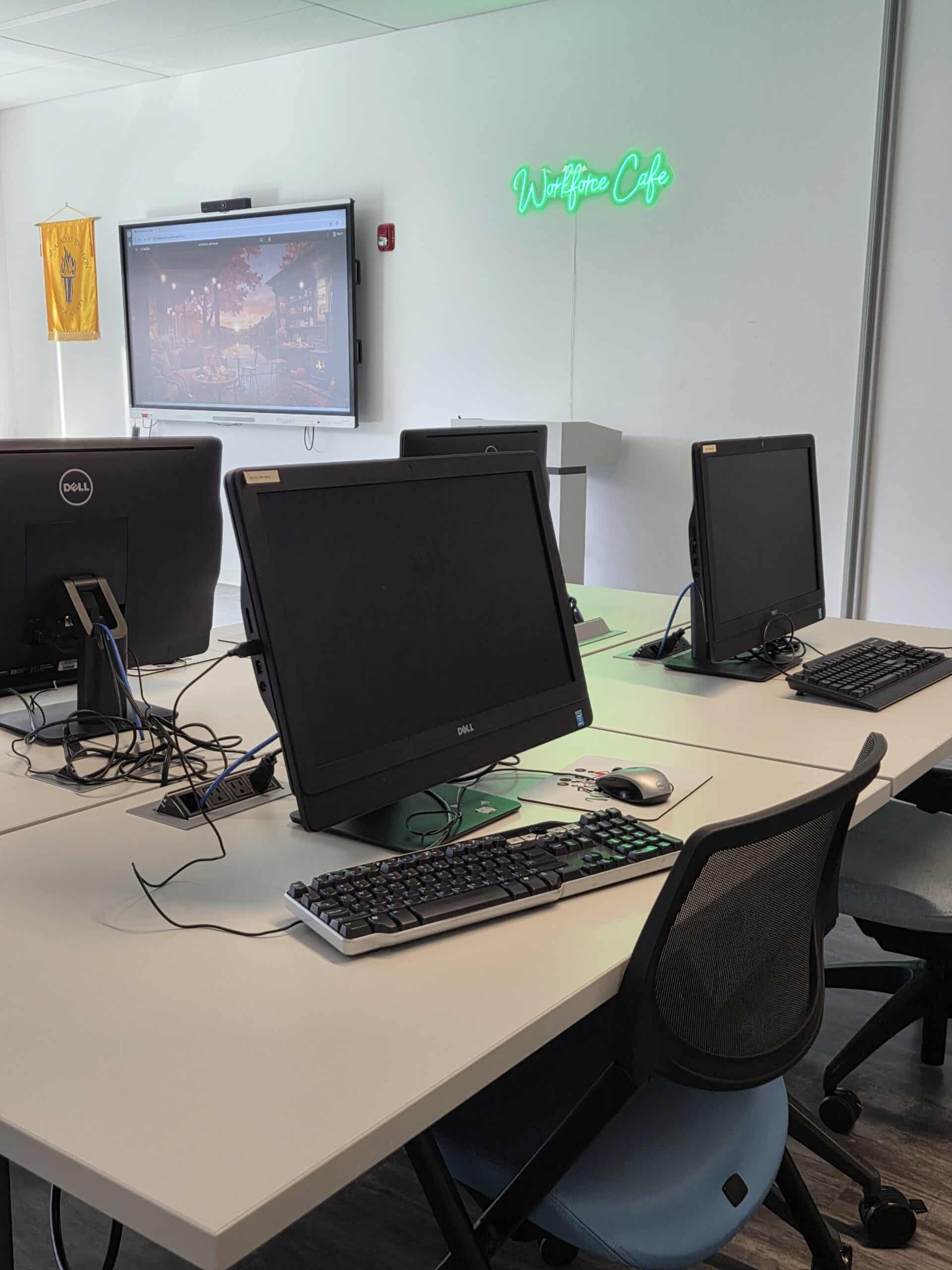 A variety of supports and resources, including workforce development courses, representative payee services, community wellness workshops, and diaper & baby goods distribution.